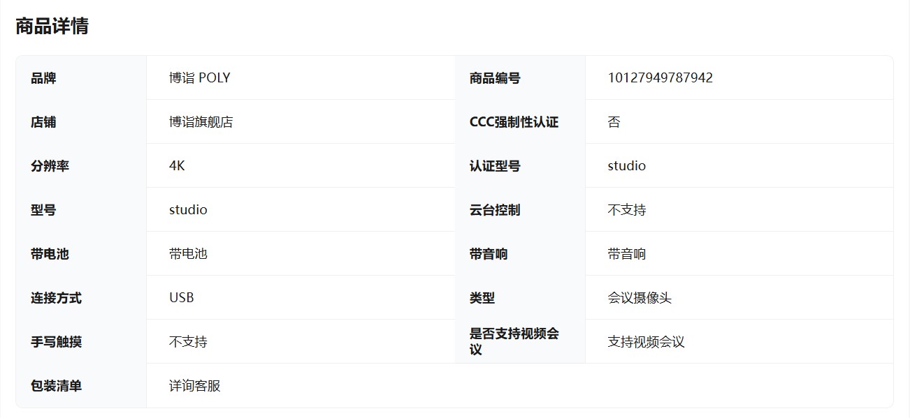 博诣 POLY惠普 STUDIO P15R30E60E70视频会议一体机 4K高清广角会议摄像头 AI降噪麦克风 E70大会议室摄像头$6500 Price:¥
